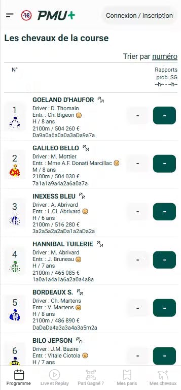 >Où trouver les informations du tableau des partants sur PMU+ ?