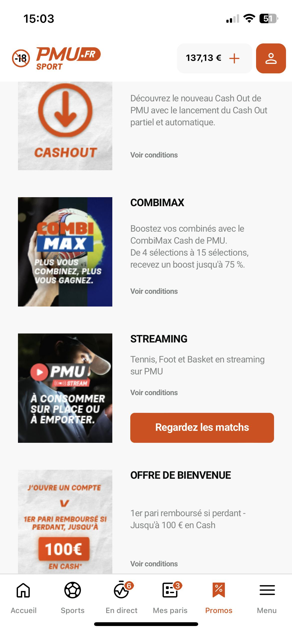 Rendez-vous dans l'onglet "Promotions", puis dans la rubrique "Streaming" cliquez sur "Regardez les matchs".