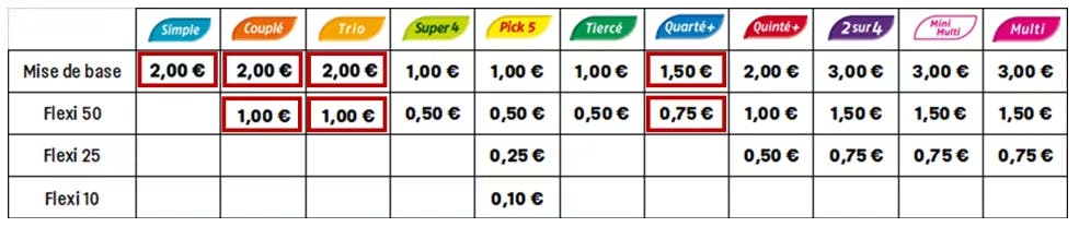Depuis mars 2023, les mises de base évoluent en point de vente, vous les trouverez encadrées dans le tableau ci-dessous.
